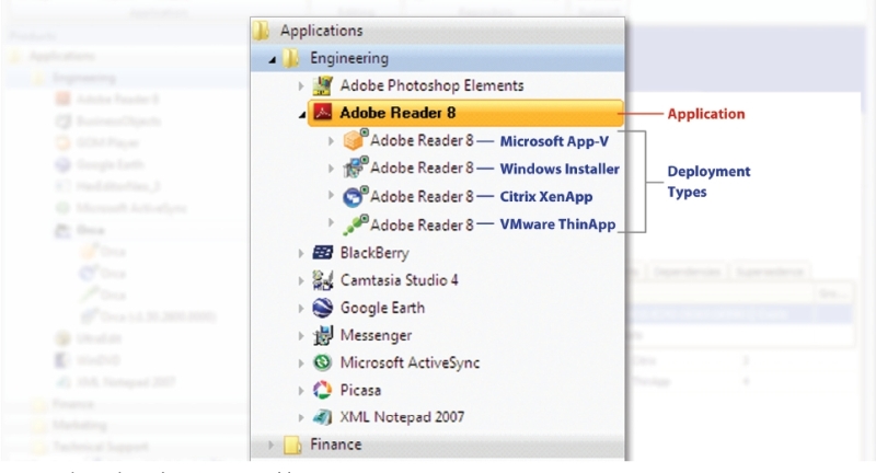 packages virtuels au format App-V de Microsoft, ThinApp de VMWare et XenApp